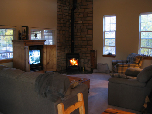 The inside of the cabin. Windows open and a fire going. In future, people will call me a visionary. But right now, they label me indecisive. |